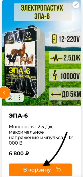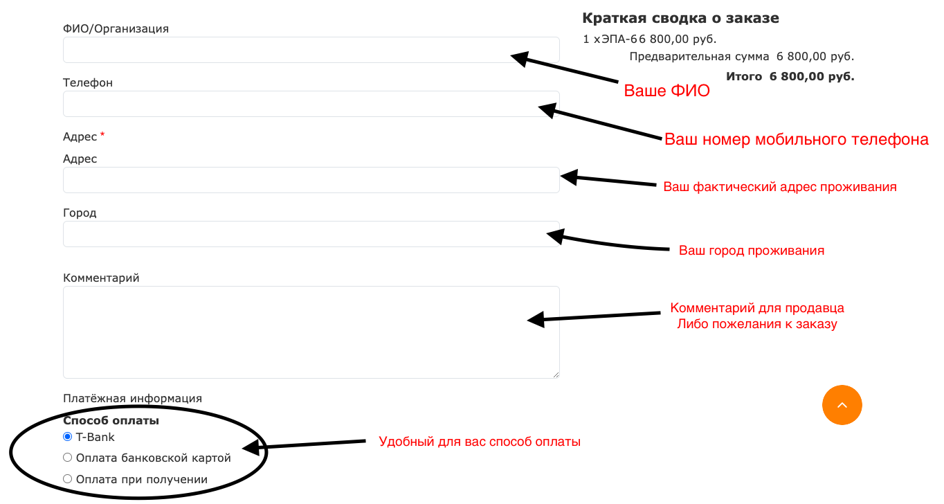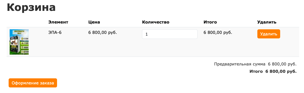 4. Открываем корзину на примере товара "ЭПА-6" и нажимаем на "Оформление заказа"